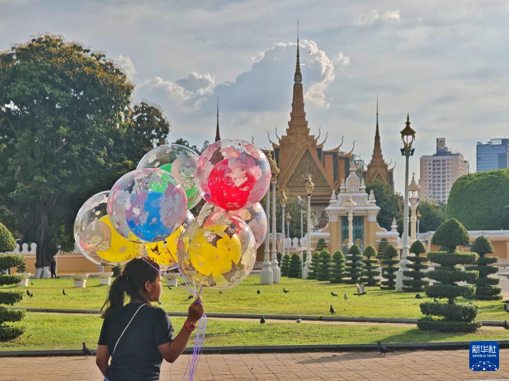 这是4月14日拍摄的柬埔寨金边王宫外的广场。