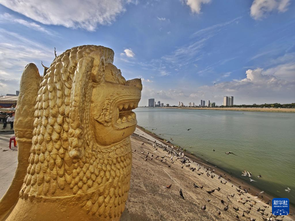这是4月14日拍摄的柬埔寨金边湄公河岸景色。
