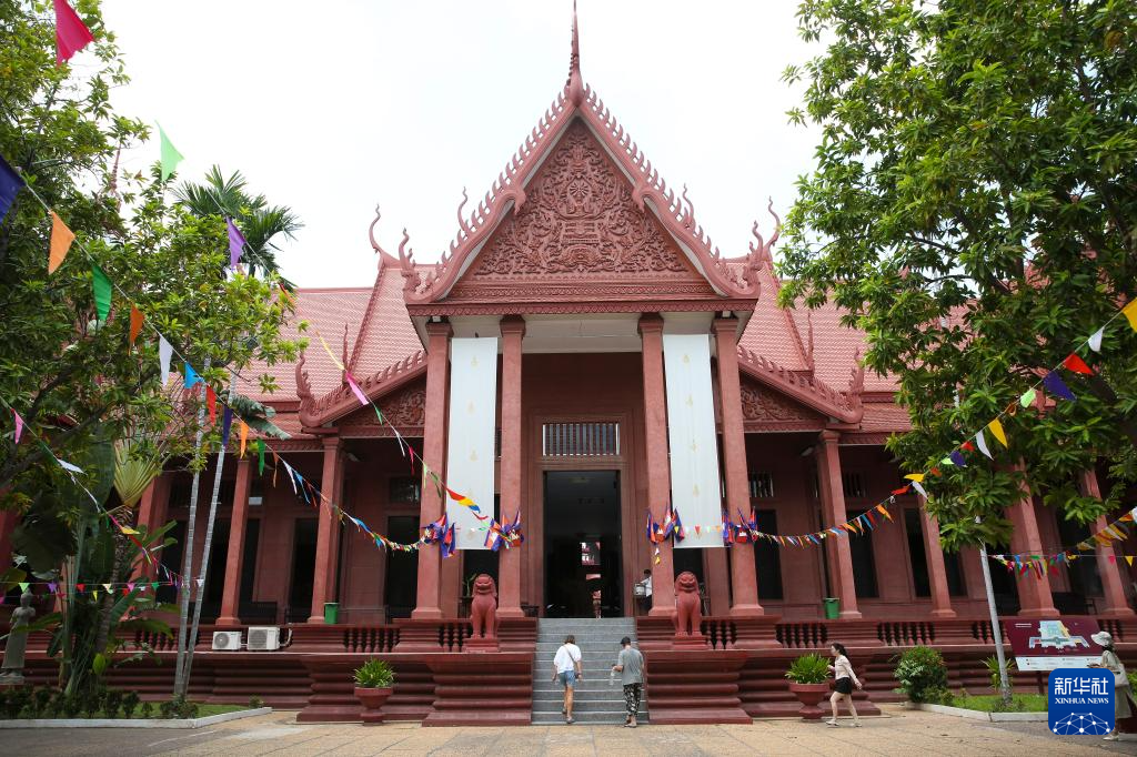 4月16日,游客在柬埔寨金边的国家博物馆游览。