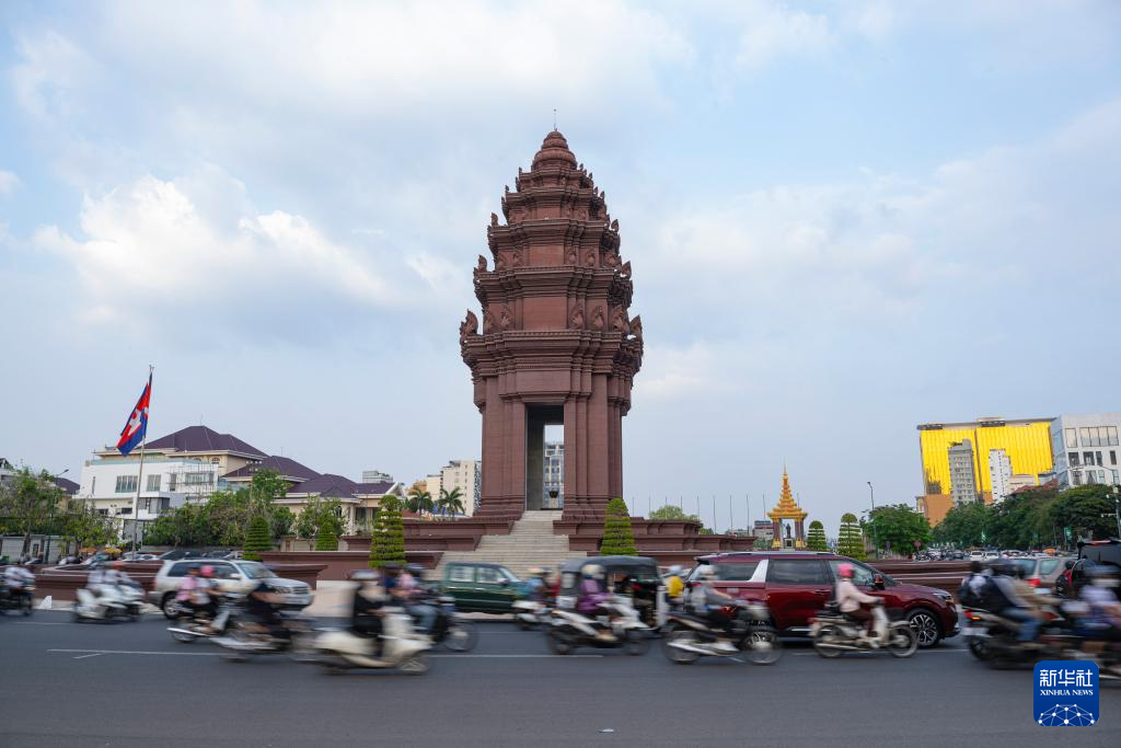 这是3月14日拍摄的柬埔寨金边独立纪念碑。