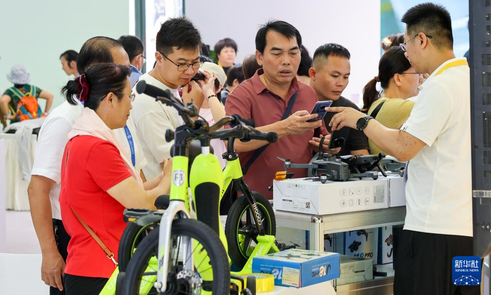 4月17日,第五届消博会全球特色消费展区人流如织。