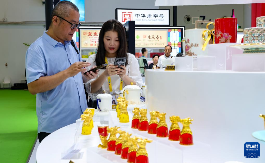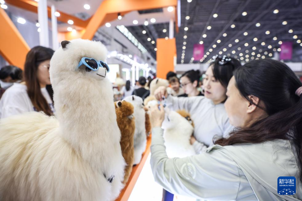 4月18日,观众在第五届消博会国货特色潮品展区留影。