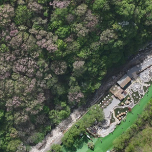 游客在位于西安市鄠邑区的太平国家森林公园游览(4月16日摄,无人机照片)。