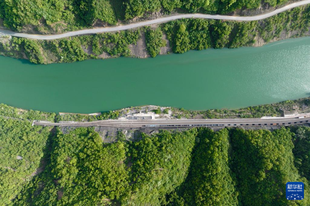 陕西省略阳县乐素河镇的秦岭、嘉陵江景色(4月16日摄,无人机照片)。