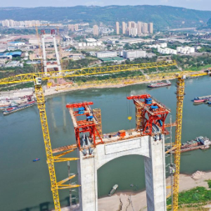 4月19日,由重庆城投集团投资、城投建设公司组织建设、中国铁建大桥局承建的黄桷沱长江大桥先导索经交通艇牵引跨越长江,大桥南、北两岸主塔顺利完成“牵手”。这一重要节点的突破,标志着这座世界最大跨径路轨两用悬索桥正式进入上部结构施工关键阶段,为后续猫道和主缆架设奠定了基础。