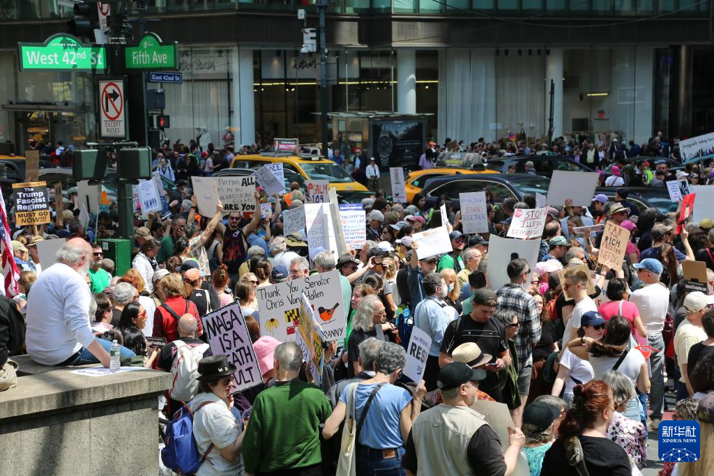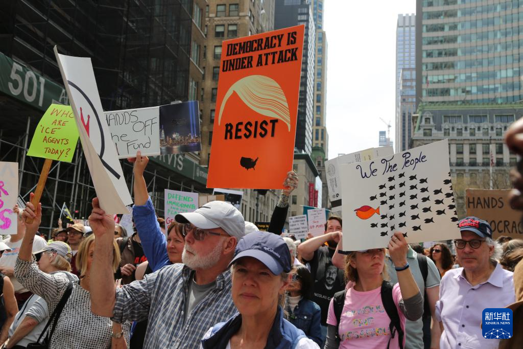 美国多地19日举行抗议活动,首都华盛顿、纽约、旧金山、波士顿等城市的民众走上街头,抗议现政府大规模裁员、加征关税、驱逐移民等政策。