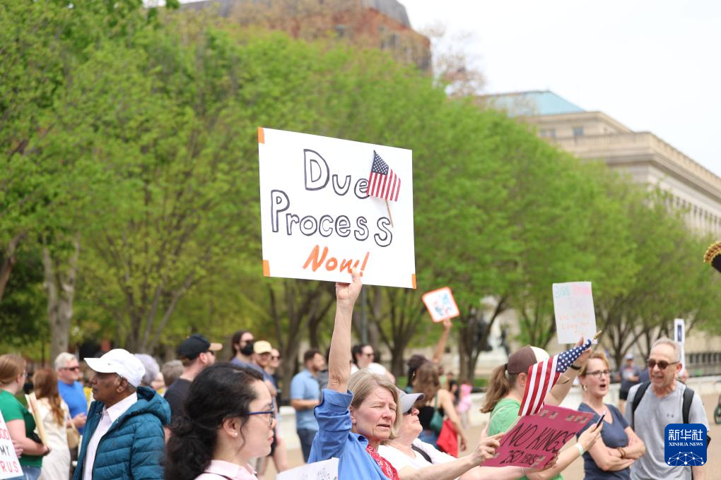 4月19日,人们在美国首都华盛顿白宫门前参加抗议活动。