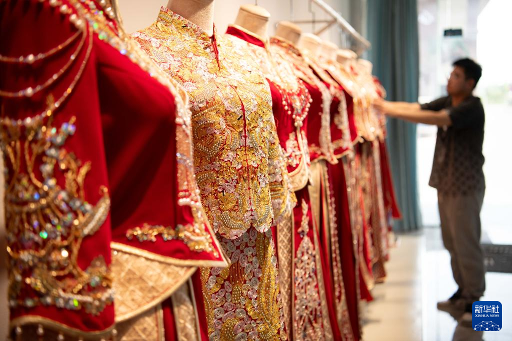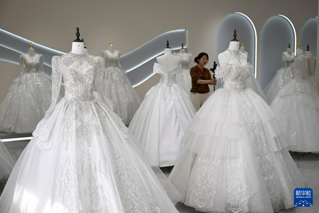 安徽省六安市裕安区丁集镇是全国有名的婚纱生产和出口基地,全镇共有婚纱生产上下游企业500余家,超过1.5万名相关从业者,打造出年产值24亿元的“甜蜜”产业。该镇2024年生产销售近500万件婚纱礼服,占全国婚纱礼服市场的30%左右,产品远销30多个国家和地区。