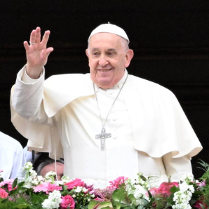 这张拍摄于2024年3月31日的资料照片显示,罗马教皇方济各在梵蒂冈圣彼得广场参加活动时向人群挥手。