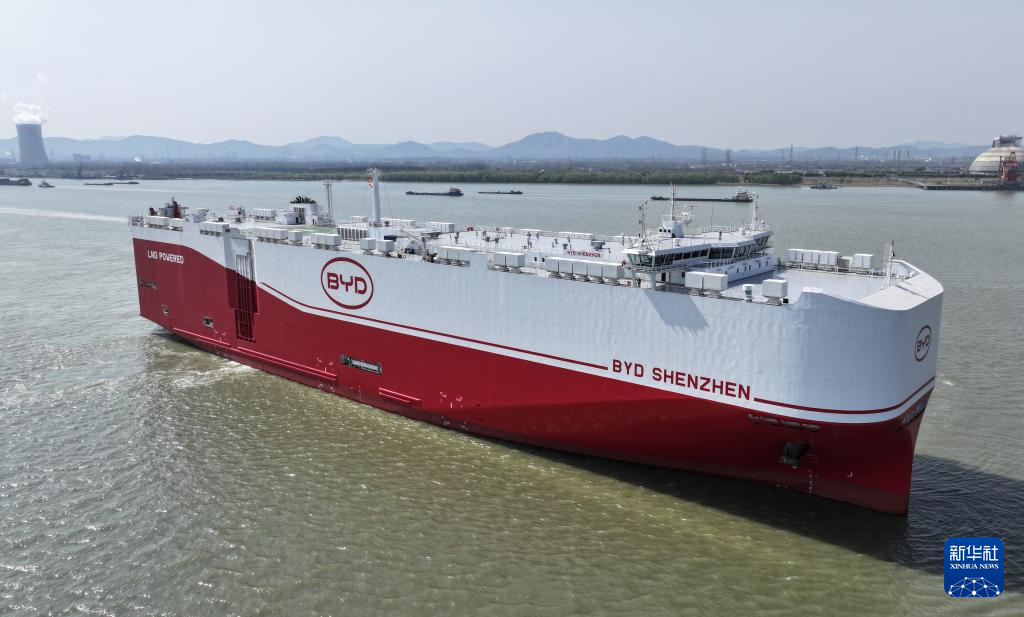 4月22日,中国新能源汽车龙头企业比亚迪第四艘汽车运输船“深圳号”(BYD SHENZHEN)在江苏仪征正式交付。该船是比亚迪的第四艘专业汽车运输船,由招商局旗下金陵船厂制造,总长219.9米,型宽37.7米,共16层甲板,拥有9200个标准装载车位,是目前已投入运营的全球装载量最大的汽车运输船。