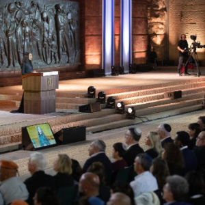 4月23日,以色列总统赫尔佐格在耶路撒冷举行的大屠杀纪念日活动上致辞。