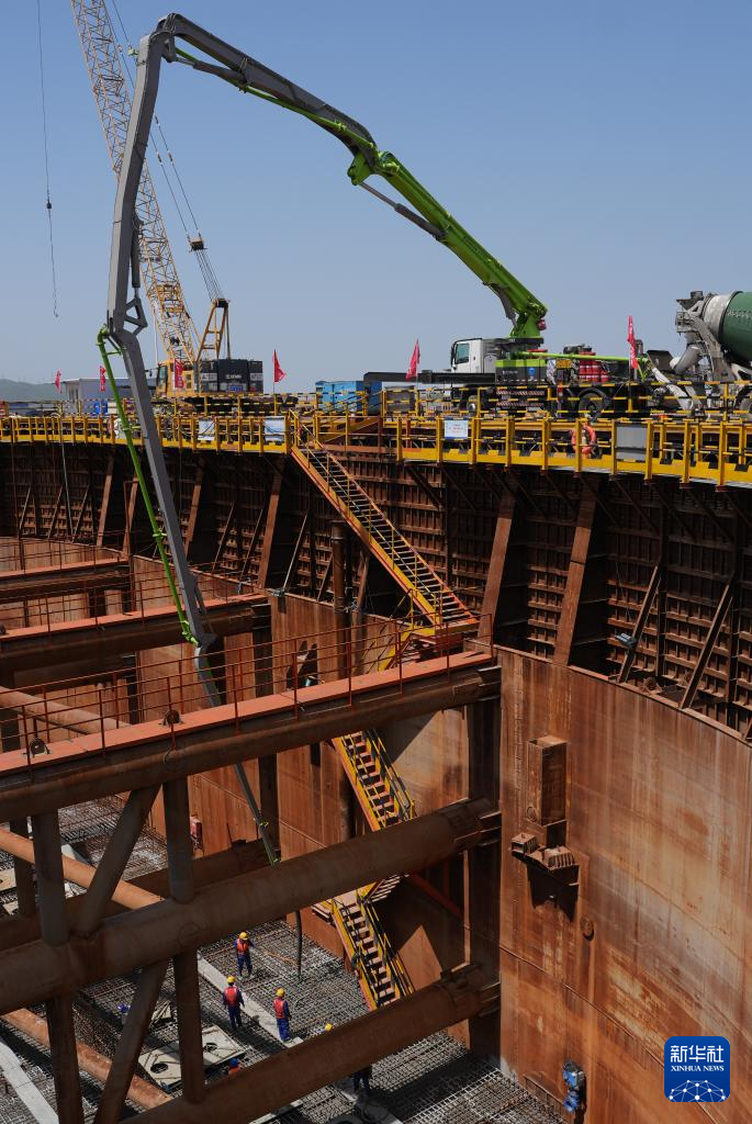 当日,杭州湾跨海铁路桥中航道桥81号主塔墩持续进行承台混凝土浇筑作业,预计于4月26日凌晨浇筑完成,这将是中航道桥首个浇筑完成的主塔墩承台,标志着大桥建设取得阶段性进展。