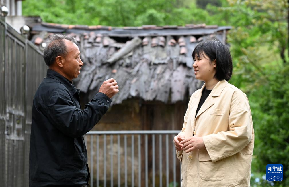 4月24日,在广西全州县蕉江瑶族乡苦马田教学点,卢加红老师(左)和黄利老师在交流。