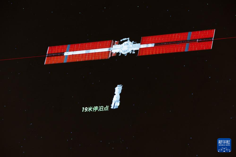 4月24日在北京航天飞行控制中心拍摄的神舟二十号载人飞船成功对接空间站天和核心舱画面。