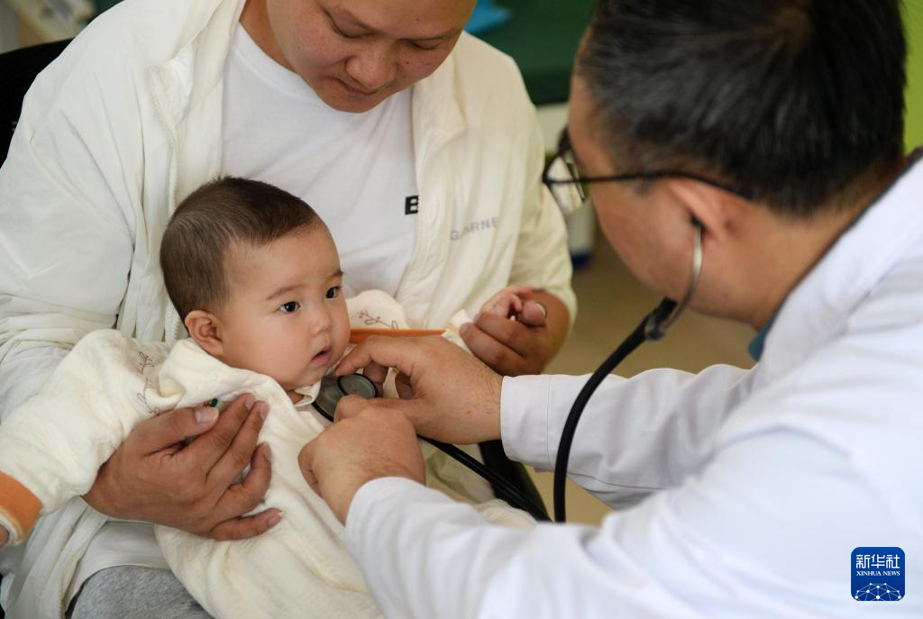4月22日,在贵阳市观山湖区妇幼保健院,来自山东第一医科大学附属中心医院的医疗专家在为孩子做检查。
