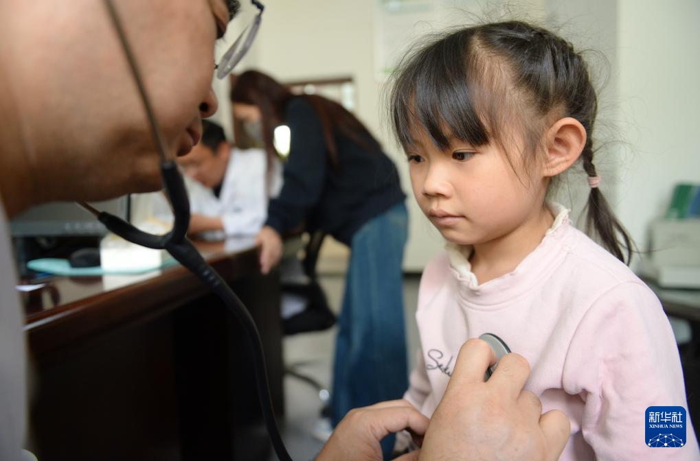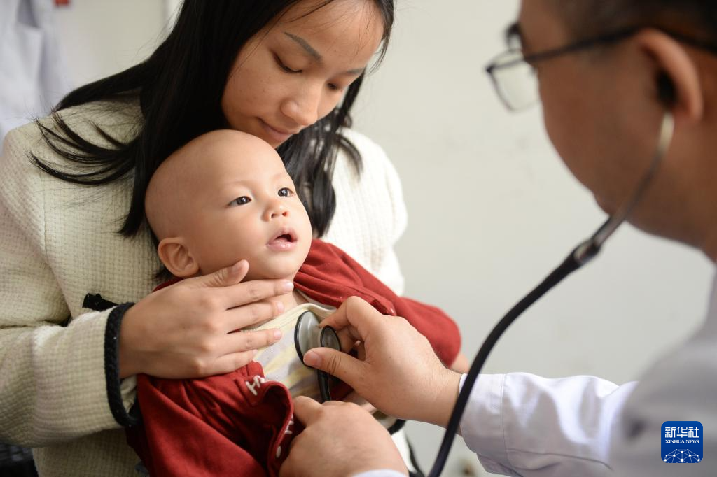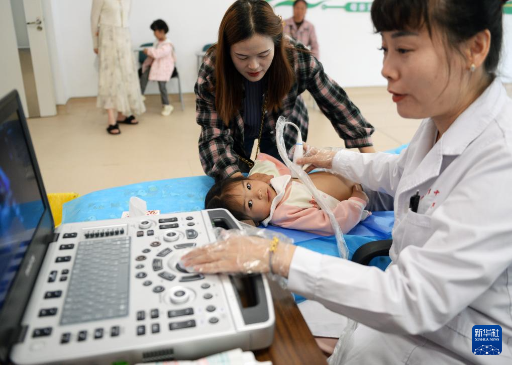 4月23日,在贵州清镇市妇幼保健院,一名小朋友在接受检查。