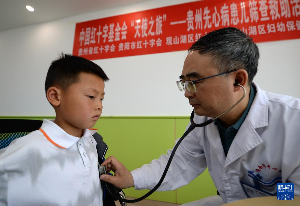 4月23日,在贵州清镇市妇幼保健院,来自山东第一医科大学附属中心医院的医疗专家在为孩子做检查。