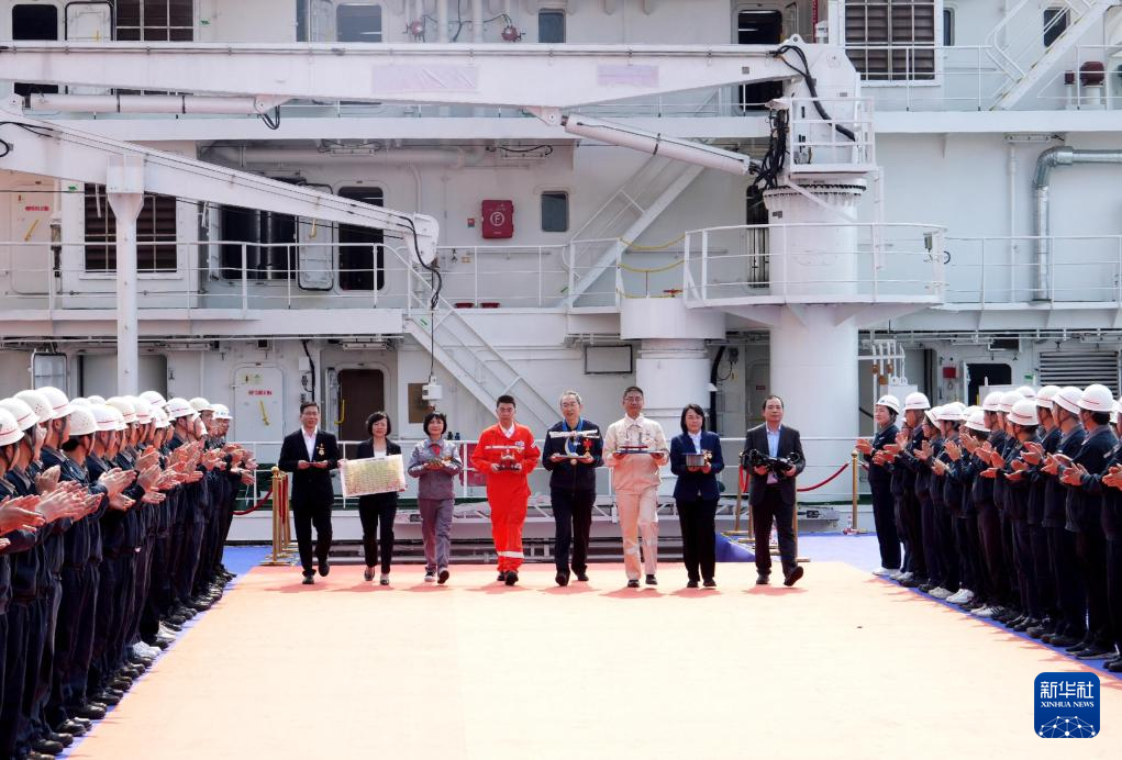 这是在广州中船黄埔文冲船舶有限公司拍摄的劳模致敬仪式现场(4月22日摄)。