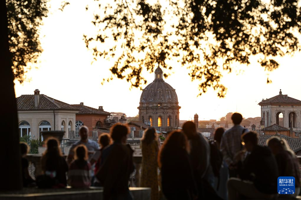 4月21日,人们在意大利罗马欣赏日落。