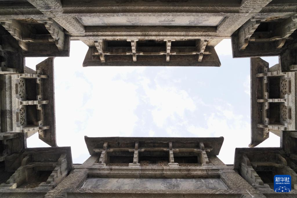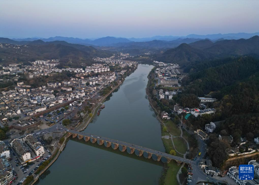 这是3月19日航拍的安徽歙县徽州古城内的许国石坊。