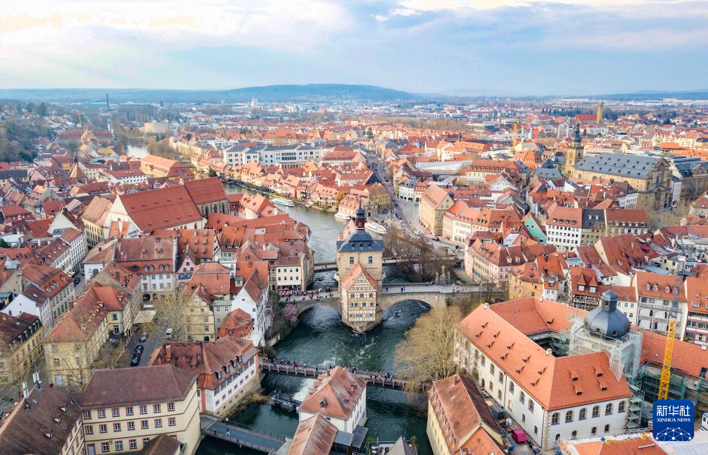 这是3月23日在德国班贝格古城拍摄的班贝格老市政厅。