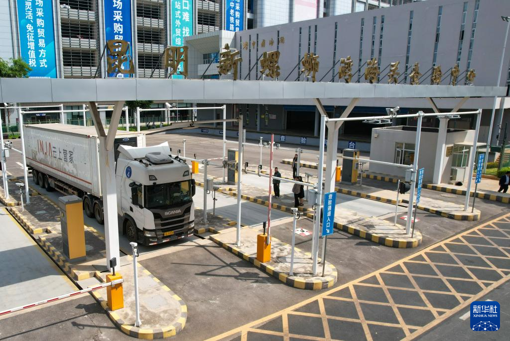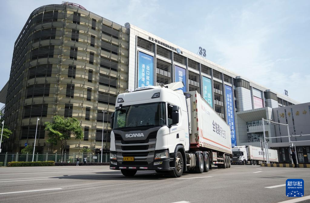 4月27日,中老柬跨境直达运输货车从昆明新螺蛳湾海关查验中心出发。