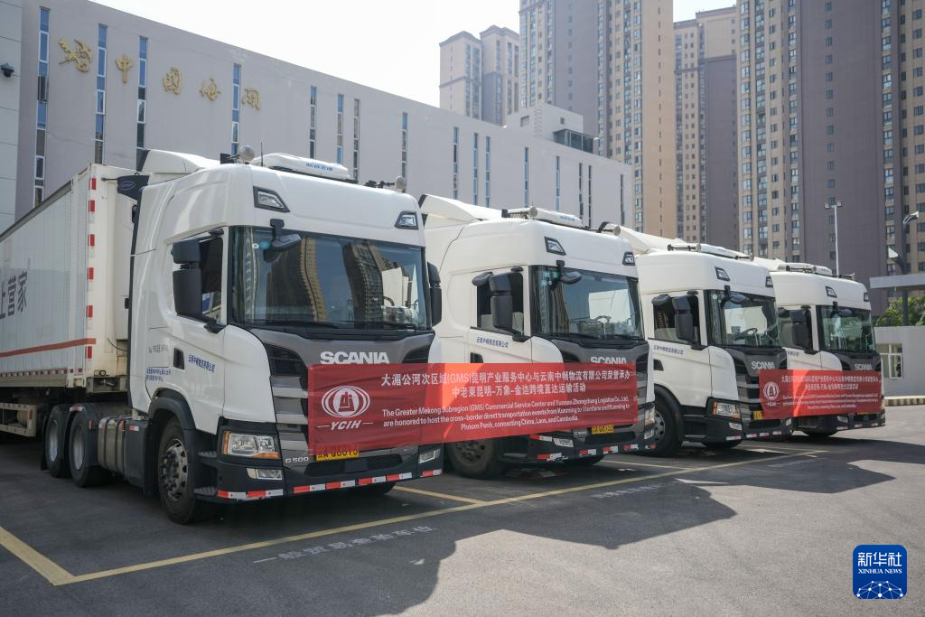 当日,大湄公河次区域(GMS)中老柬(昆明-万象-金边)跨境直达运输发车仪式在云南昆明新螺蛳湾海关查验中心举行。满载着吊扇、塑料水箱等日用百货的跨境货运车队自该地启程,将经过老挝万象,最终抵达柬埔寨金边。这标志着在大湄公河次区域便利货物及人员跨境运输协定的框架下,又一条国际物流新通道正式启动常态化运营。