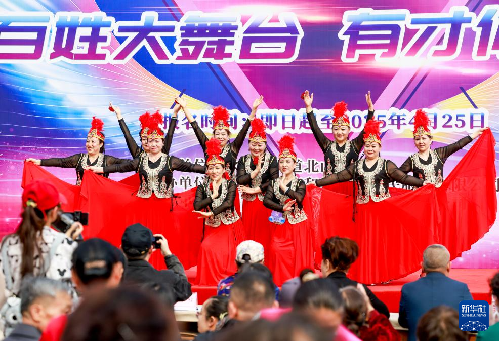 4月27日,乌鲁木齐市水磨沟区七纺街道北山社区居民参加“百姓大舞台”文艺演出。