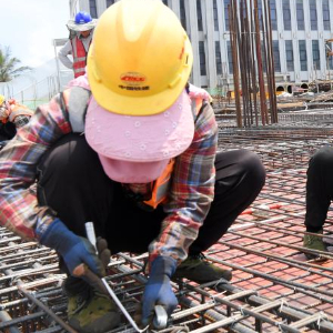 4月29日,工人在海棠湾蜈支洲岛旅游区配套工程施工现场施工。