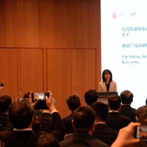 4月28日,日本广岛县副知事横田美香在开幕式上致辞。
