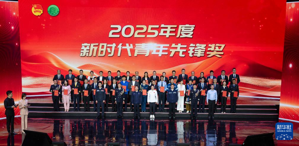 4月30日,2025年度新时代青年先锋奖获奖者在颁奖活动上合影。