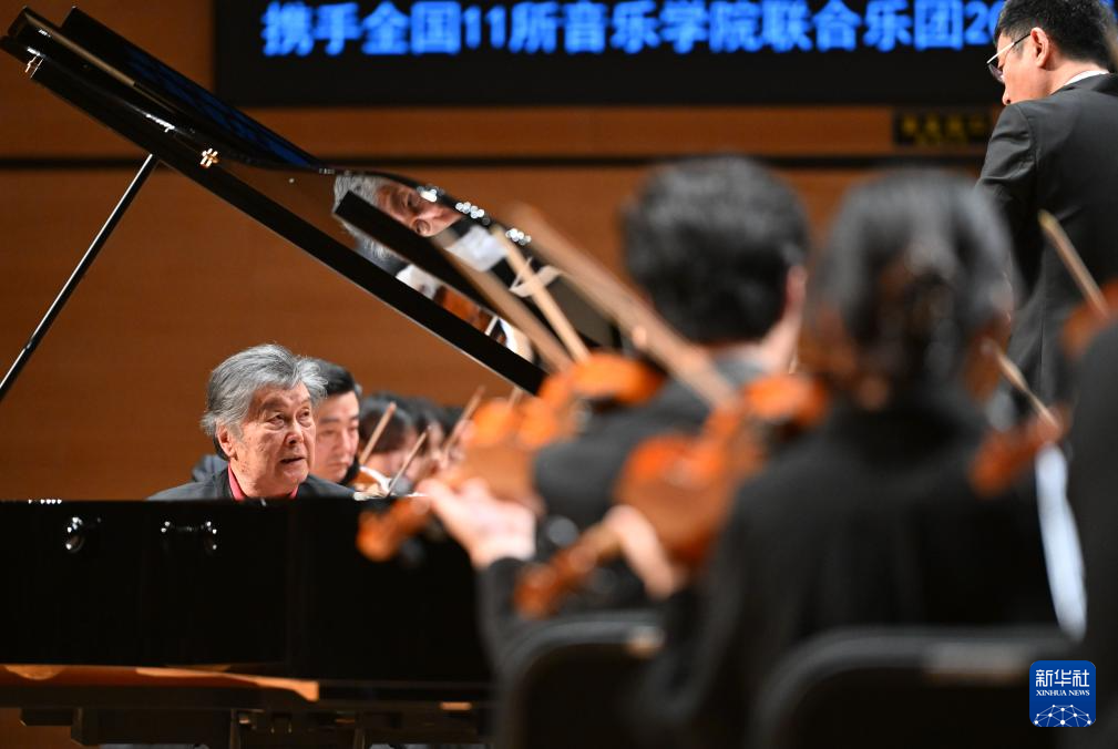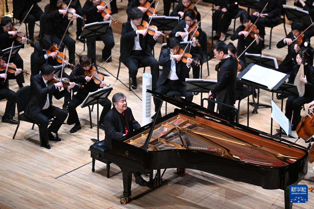 5月1日,钢琴家殷承宗(左一)在2025天津音乐节开幕式音乐会上演奏。
