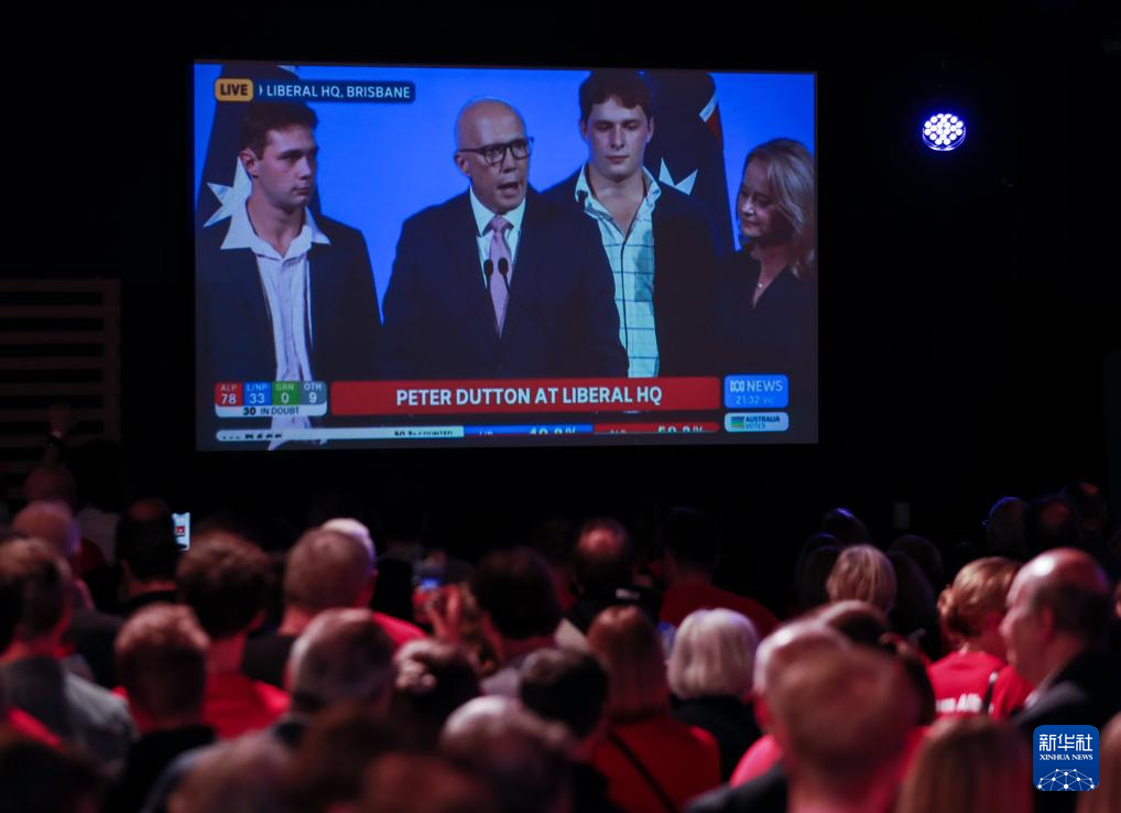 这是5月3日在澳大利亚悉尼拍摄的澳大利亚自由党-国家党联盟领袖达顿败选后的电视画面。