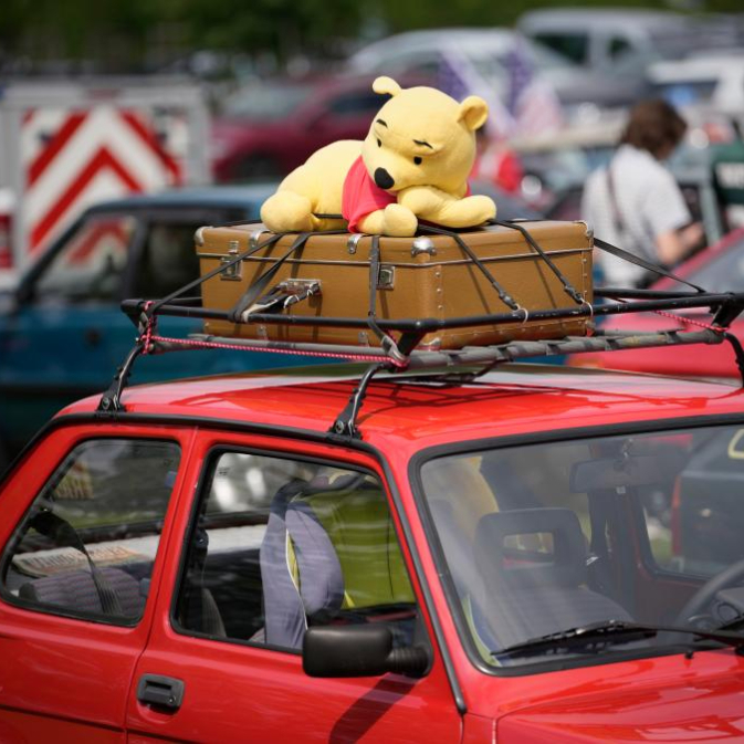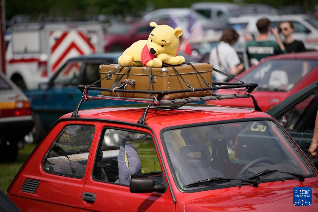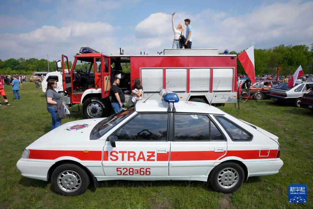 5月3日,人们在波兰首都华沙参加老式汽车展。