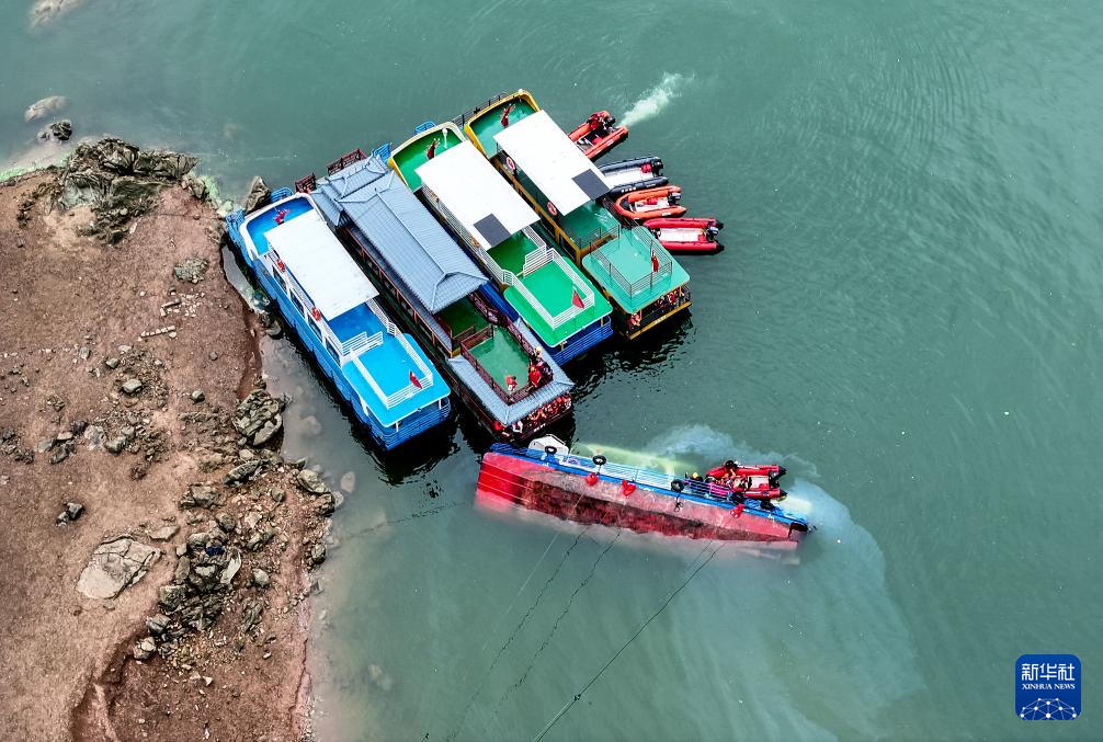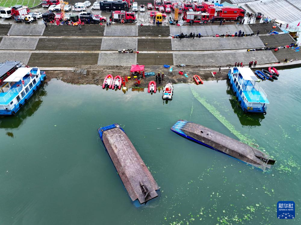这是发生倾覆事故的船只(5月5日摄,无人机照片)。