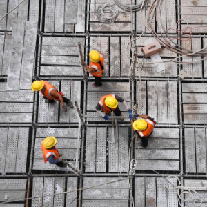 5月5日,工人在三亚河口通道工程项目现场施工。