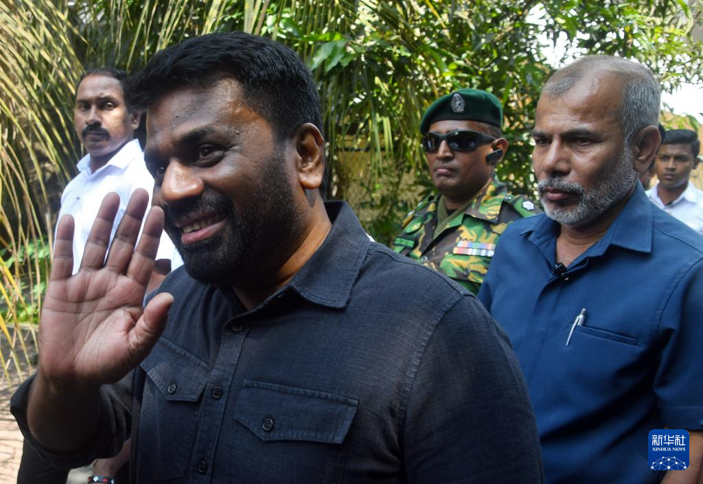 5月6日,斯里兰卡总统迪萨纳亚克(左)在科伦坡一处投票站附近准备投票。