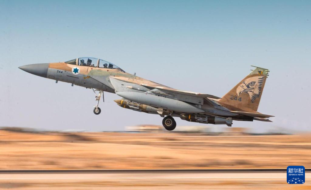 这张5月5日发布的未注明拍摄地点的照片显示,以色列空军战斗机飞往也门荷台达省执行空袭任务。