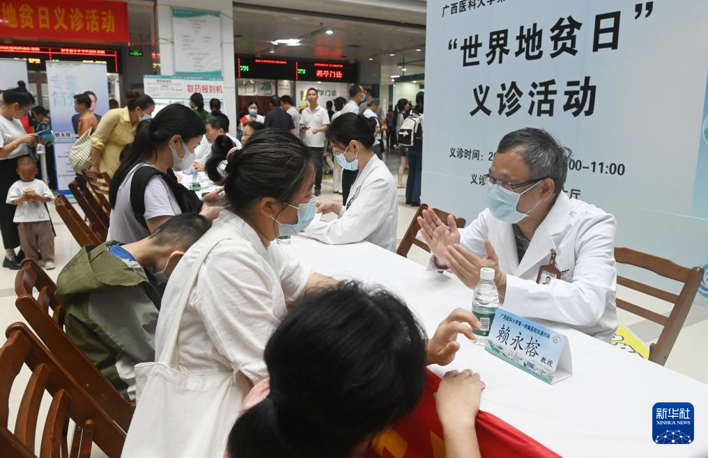 当日是世界地贫日,广西医科大学第一附属医院开展义诊活动,为地中海贫血患者及其家属提供咨询诊疗服务,并宣传地贫防控知识。