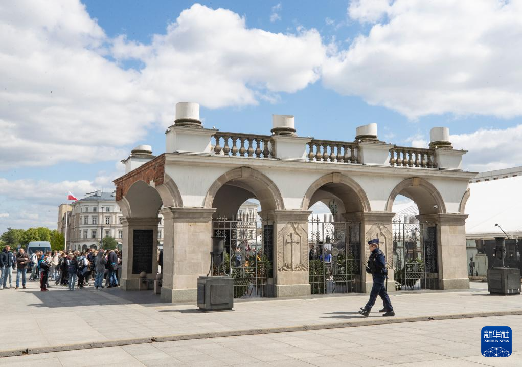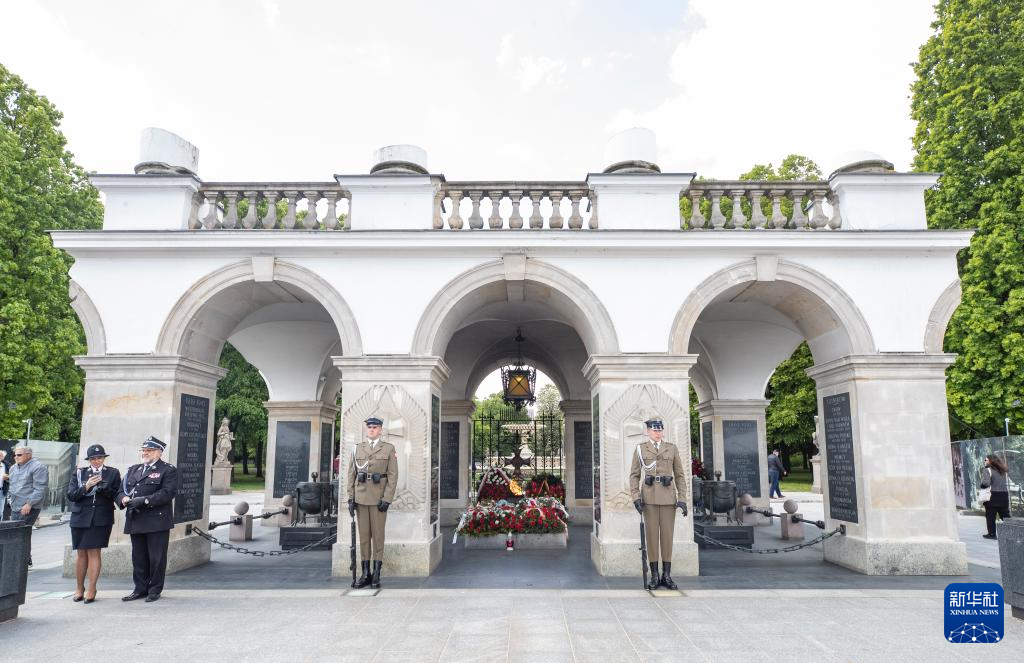 这是5月8日在波兰首都华沙拍摄的无名烈士墓。