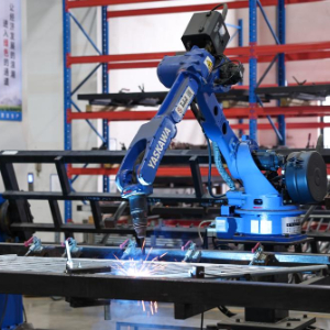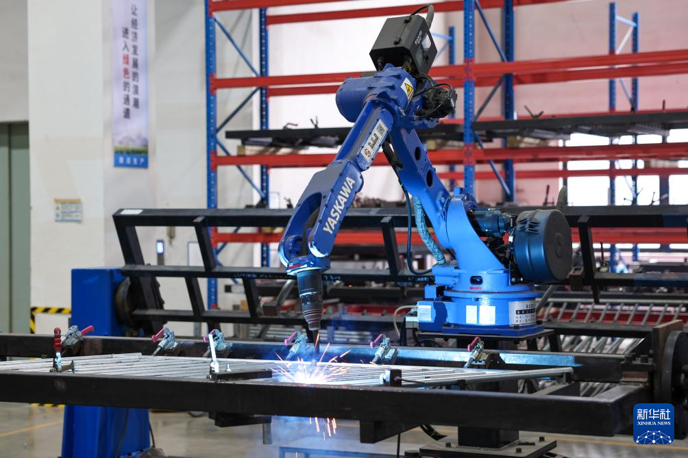 5月8日,温州市永嘉县凯奇集团有限公司的机械臂在进行焊接作业。