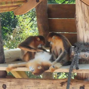 来自中国的三只金丝猴7日正式亮相法国博瓦勒野生动物园,该园还为这批金丝猴举行了命名仪式。在7日的命名仪式上,博瓦勒野生动物园园长鲁道夫·德洛尔揭晓了公众通过网络投票形式为三只金丝猴选出的新名字:“金豆”“金宝”和“金花”。