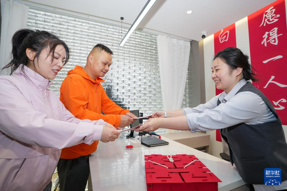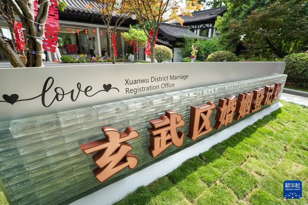据介绍,南京市玄武区响应民政部婚姻登记进景区的倡导,将婚姻登记处整体搬迁至南京市玄武湖公园,设置婚姻登记区、中式颁证区、打卡拍照区和婚姻家庭辅导室等功能区域,旨在打造“服务+登记+消费+公益+文旅”五位一体新模式,让每一对新人在收获幸福的同时,留下甜蜜记忆。