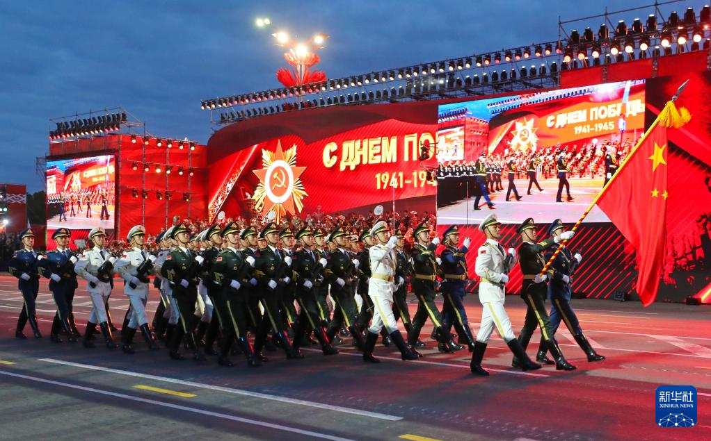 5月9日,在白俄罗斯首都明斯克,中国人民解放军仪仗司礼大队抽组仪仗分队参加纪念苏联伟大卫国战争胜利80周年阅兵式。