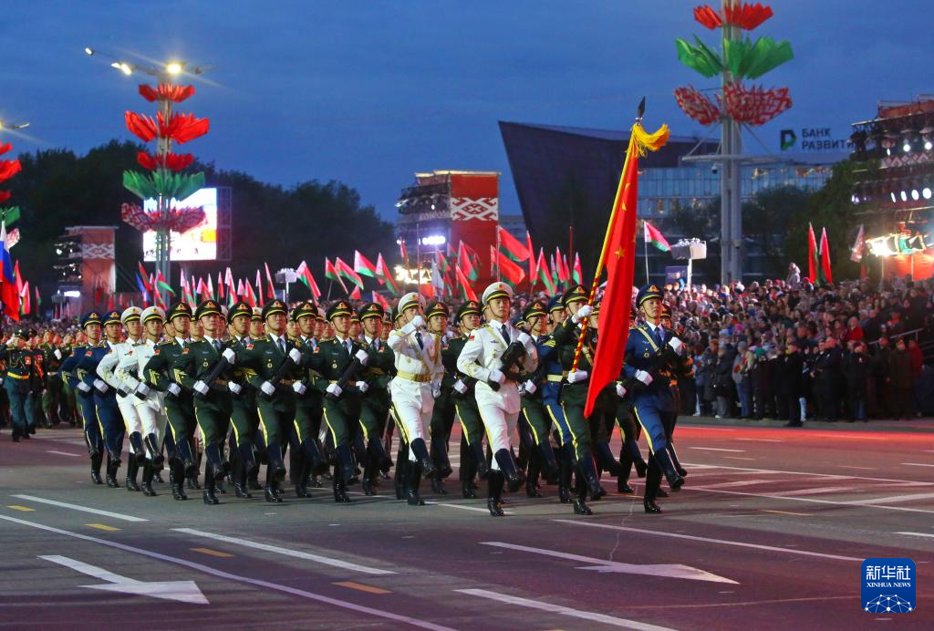 应白俄罗斯国防部邀请,中国人民解放军仪仗司礼大队抽组仪仗分队9日在白俄罗斯首都明斯克参加白俄罗斯纪念苏联伟大卫国战争胜利80周年阅兵式。