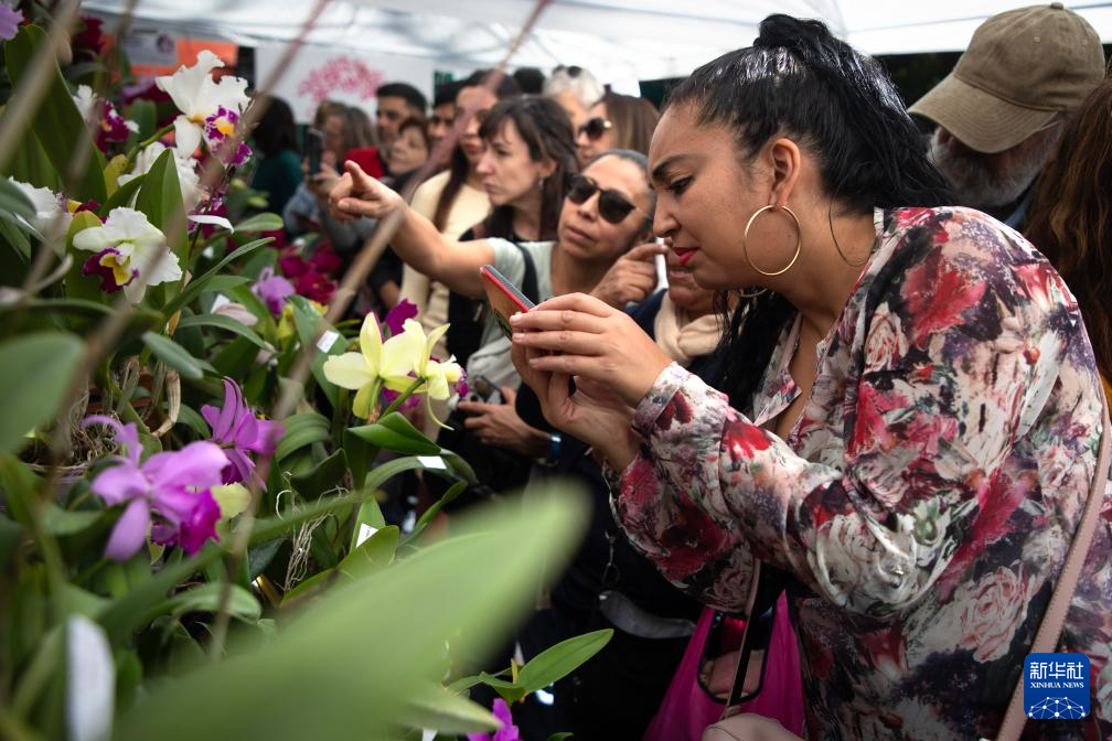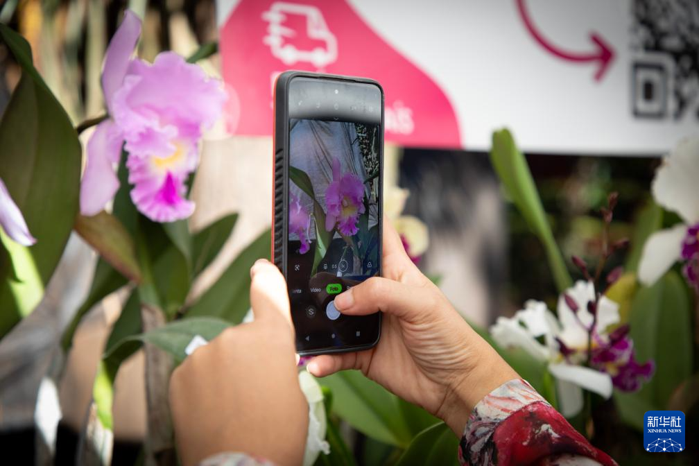 5月10日,在阿根廷布宜诺斯艾利斯,参观者在兰花博览会上拍摄兰花。
