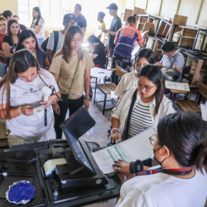 5月12日,在菲律宾奎松市,选民在投票站内参加投票。