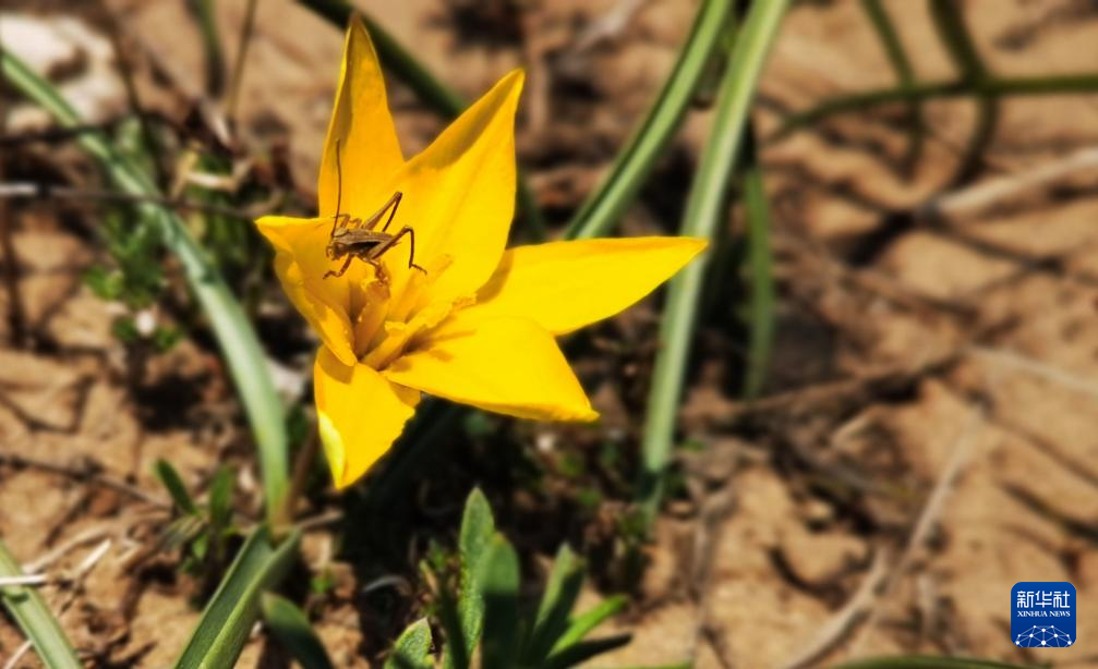 5月10日,在内蒙古自治区克什克腾旗黄岗梁自治区级自然保护区,一只昆虫落在蒙古郁金香上。