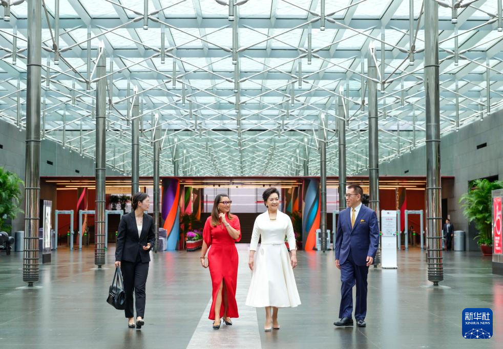 5月13日下午,国家主席习近平夫人彭丽媛和陪同巴西总统卢拉来华进行国事访问的总统夫人罗桑热拉参观中国国家大剧院。