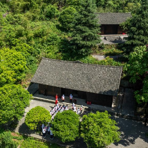 5月12日,威信县第一中学的学生在花房子会议会址参加红色研学活动(无人机照片)。